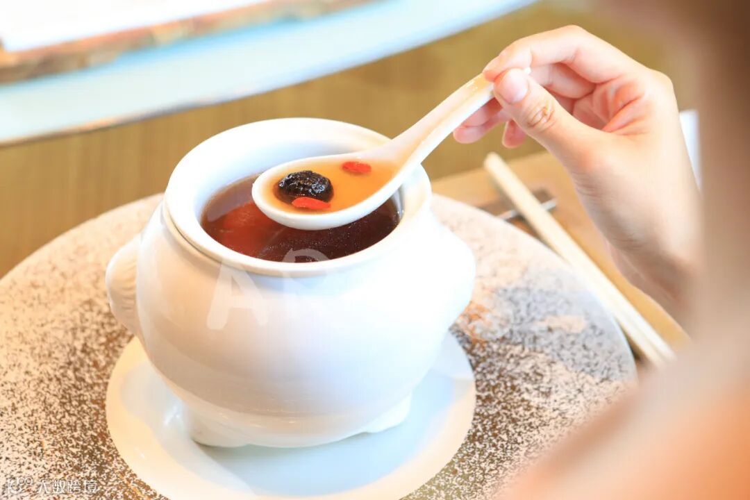 2.黑蒜炖黑珍猪肉汁汤:汤色醇厚如墨玉,黑蒜酸甜软糯,化解油腻,独留浓郁肉香。里脊肉经久炖,精华尽释汤中。蔡澜推崇“好肉清炖显真章”,此汤温和滋补,尽显食材本真。