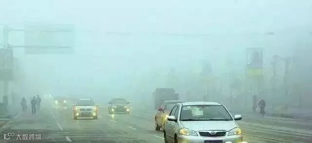 在高速公路上行驶,遇有雾、雨、雪、沙尘、冰雹等低能见度气象条件,能见度小于100米时。