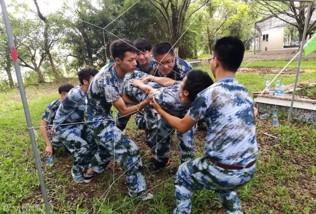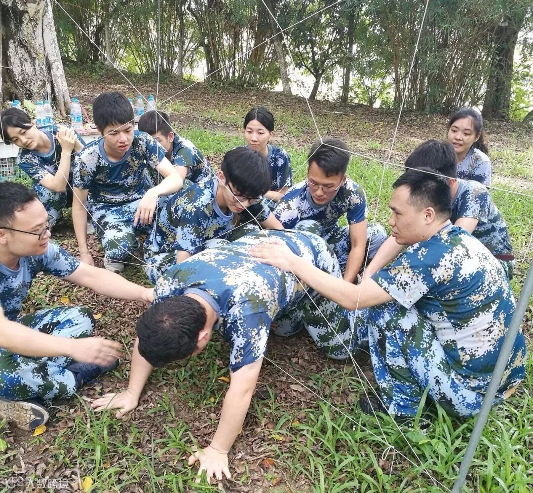 面对着高压电网,每个网洞只允许一个人通过,又不能说话的前提下,结合团队成员的身材大小,如何分配网洞,如何不触电就把队友送出去,这就是穿越电网的魅力。在项目过程中,有部分队友因为出声、多次违反了规则,着实让队长,接受了不少俯卧撑的惩罚。
