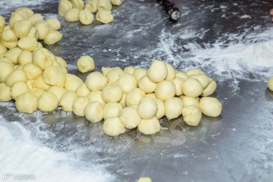 包馅的手法亦尤为讲究,取皮按扁、接着放馅收口,包的过程中需要左右手结合一边转动,右手食指一边往上搓皮,最后用虎口收口。整个过程一定要快,慢一点都不行。一个个讨喜的嫁女饼在一双巧手下渐渐成型。