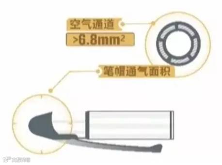 据了解,合格的笔帽无论是外部还是内壁,都留有规则的通气孔,标准要求必须要大于6.8平方毫米,以避免笔帽被误吞后带来的窒息危险。而此次经检测不合格的笔帽,其通气面积要么是通气孔面积小,要么是完全堵死,根本起不到流通空气的作用。