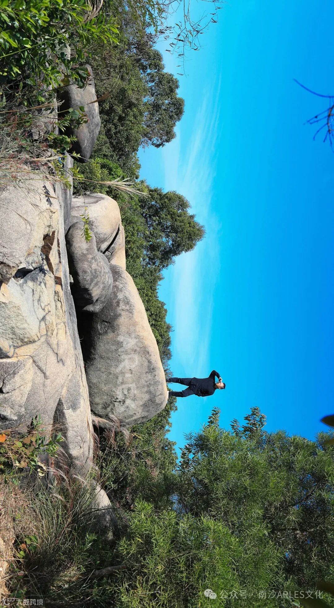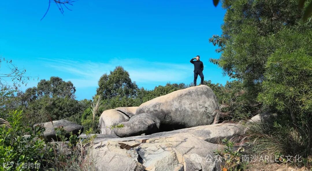 大山乸,海拔 224.6 米,是南沙区的第二高峰。大山乸周围环绕着十多座海拔150 米左右的小山峰,犹如众子拥母,故人们以粤语命名大山乸,寓意“孕育与共生”的理念。大山乸山体以花岗岩为主,南北长 2000 米,东西宽 2600 米,山上风光旖旎,苍翠欲滴,极目远眺,群峰环绕,湛蓝的天空飘来片片云彩,“云来山逾静,云去山如画。”大山乸的麒麟石散落山中,形态各异,而主峰烟墩岗山顶上的麒麟“石牛”“石猪”更是惟妙惟肖,是大山乸的标志,被称之为大山乸的风水石。