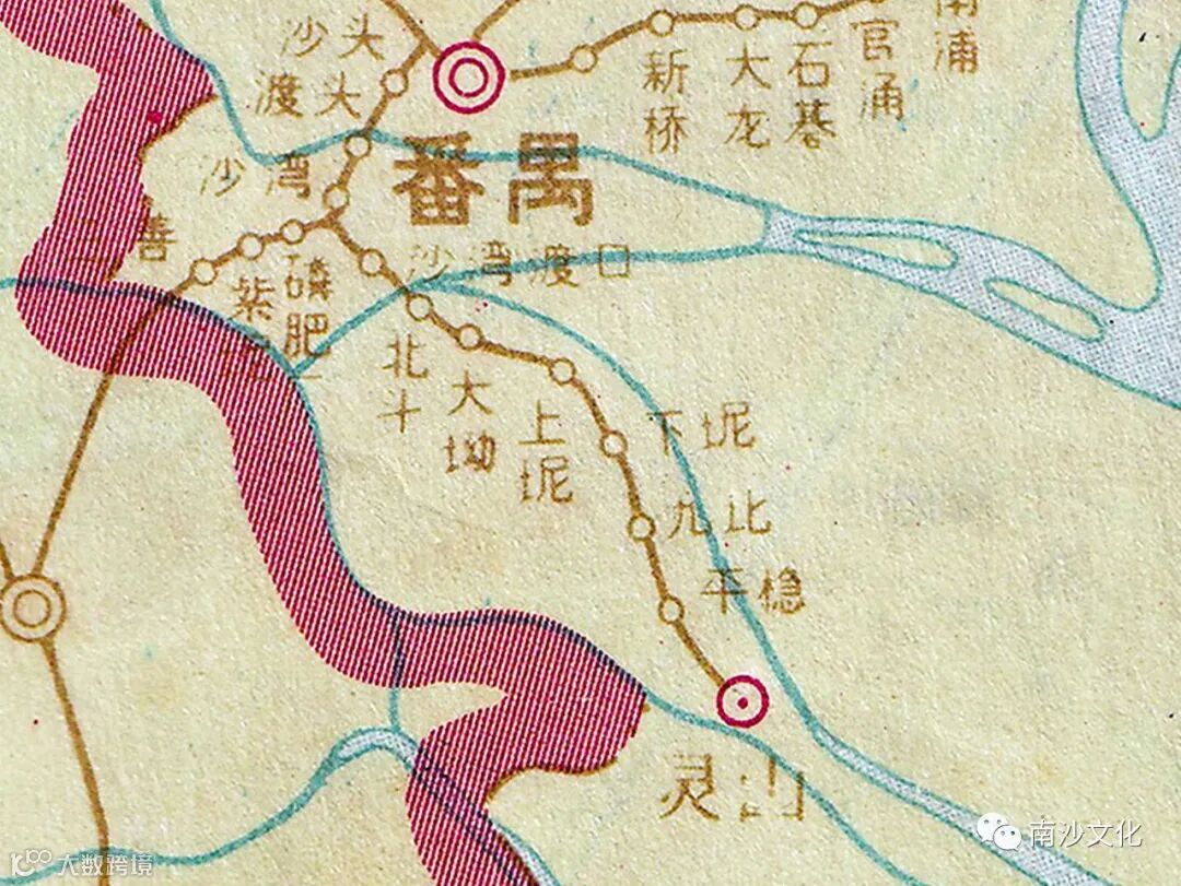 通过这张地图,我们可以看出广州到南沙的班车最后一个站就是灵山,也就是今天大岗镇的位置。