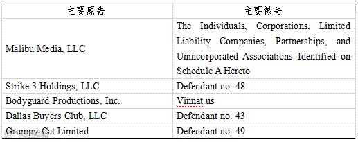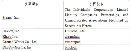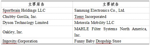 Ellis法官审理的知识产权诉讼案件主要集中在商标、版权与专利领域。其中商标诉讼案件的原告主要集中在眼镜公司、动画制作公司、电子烟液体瓶制造公司等,被告主要集中在外贸公司或电商企业等。版权诉讼案件的原告主要集中在影视制作公司、设计公司等,被告主要集中在外贸公司或电商企业等。专利诉讼案件的原告主要为电子烟液体瓶制造公司、家电设计制造公司、眼镜公司、特种材料和生命科学公司等,其中部分原告为NPE(Non-Practicing Entity,非专利实施主体);被告主要集中在通信科技公司、医疗器械公司、过滤器制造公司、外贸公司或电商企业等。值得注意的是,商标、版权诉讼案件中有较多被告以附表A(Schedule A)形式出现。