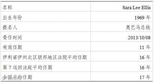 2013年10月,Ellis就任伊利诺伊州北区联邦地区法院法官。其个人信息如下: