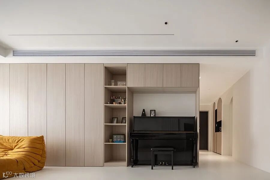 设计理念:家中带有生活艺术的趣味性,以音乐元素融入建筑当中,用弧度的美学导向开放空间,无不在诉说着专属于这个家庭的生活态度。