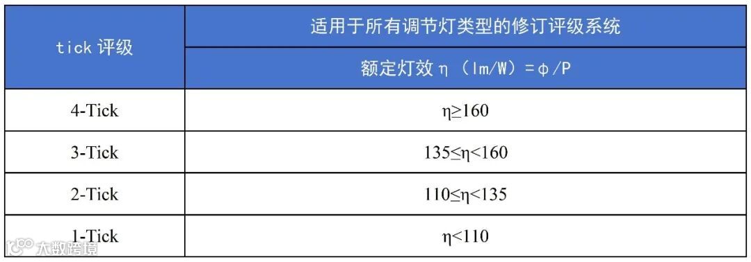 (2)所有受管制的灯泡tick评级将整合为单一评级,如下表: