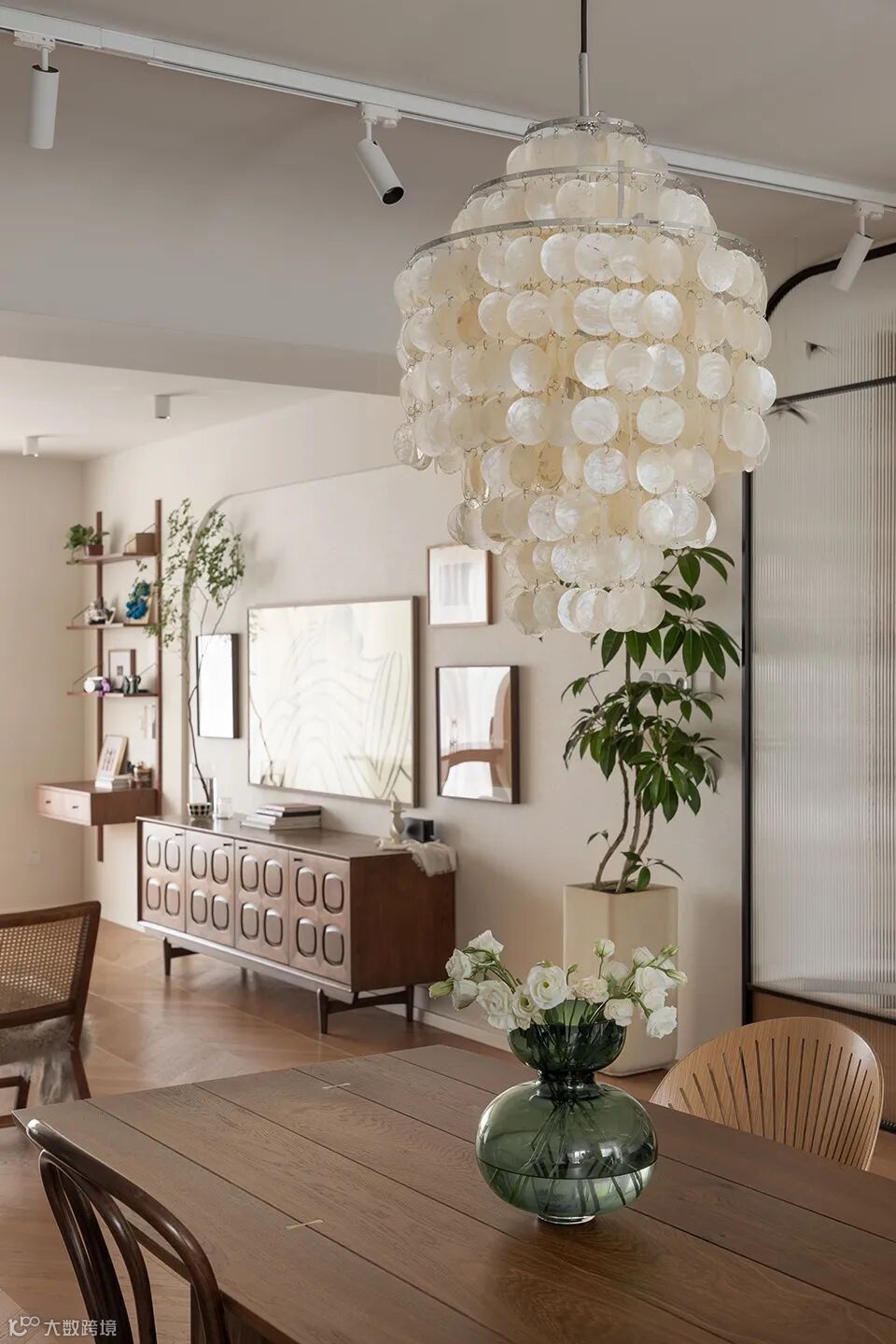 整体设计以木色为主要基调,因此在材质选择上更要注重它们的肌理,在光影的配合下,让整个空间变得多元丰富起来。