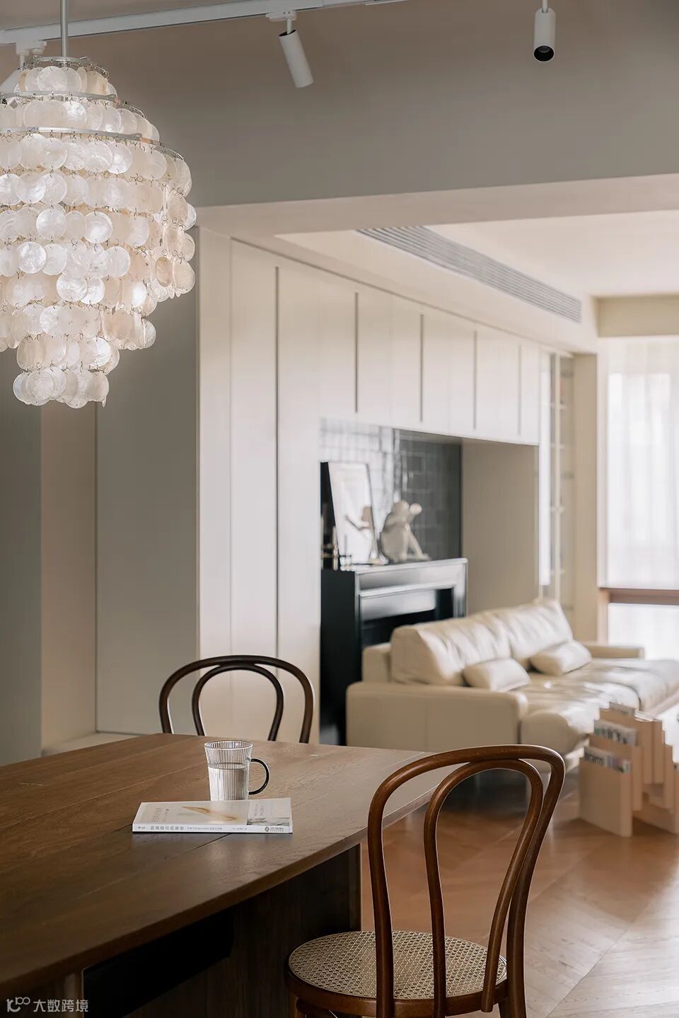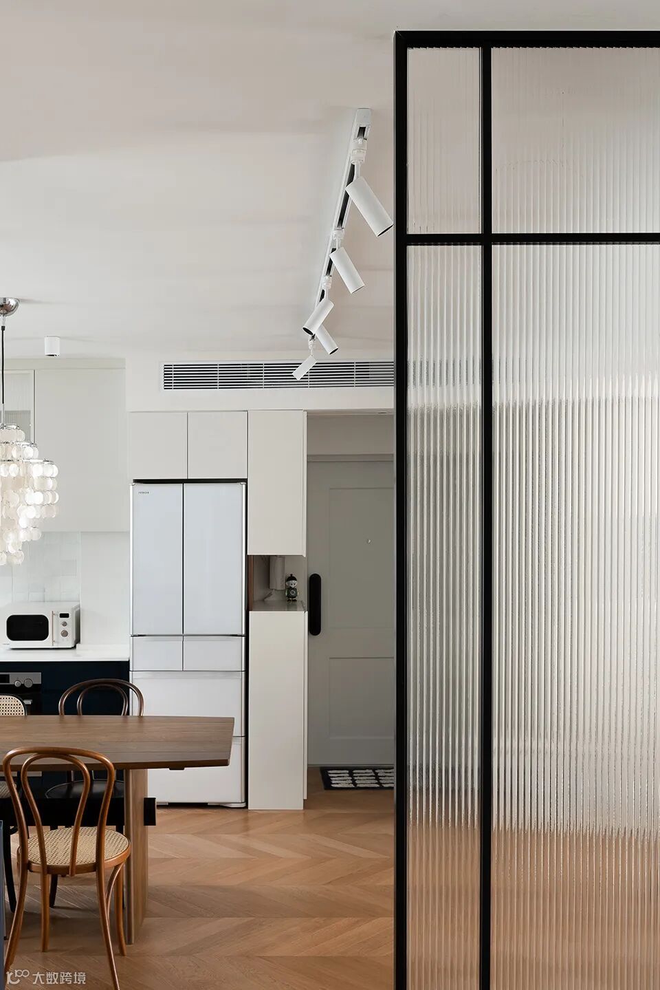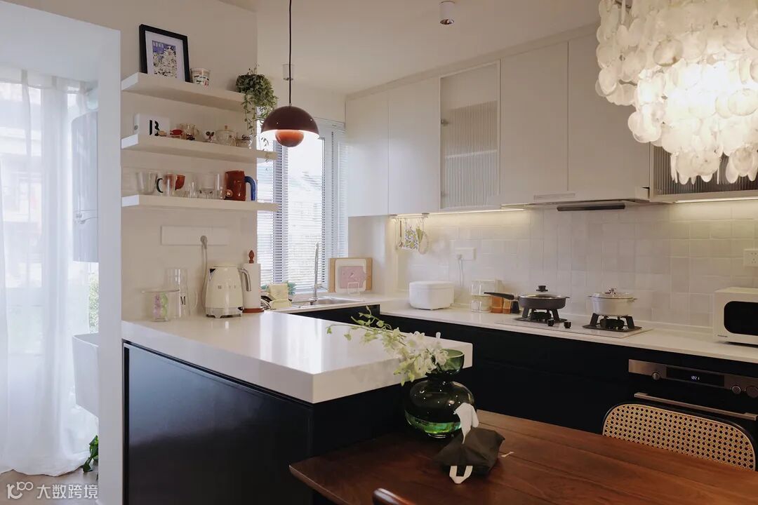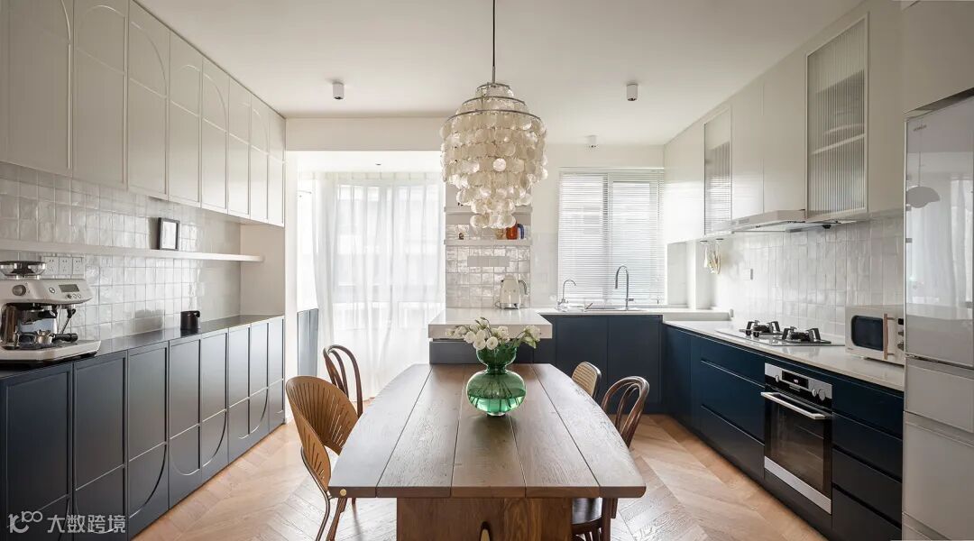 This is a set of old house renovation project.The original layout was dense, with a traditional enclosed kitchen.After renovation, the kitchen is dismantled to open up the pattern and form an integrated space of kitchen.The north-south pattern not only brings better natural light and air circulation, but also becomes the main activity space for the two owners -- chatting, reading, having a party, eating and cooking all take place here.
