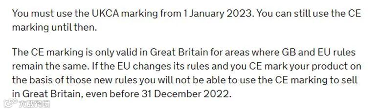 CE标志仅在英国大不列颠与欧盟法规保持一致的情况下有效,如果欧盟更改了它的法规要求而您根据这些新法规要求对您的产品加贴CE标志,即使在2022年12月31日之前,加贴CE标志的产品也无法被大不列颠市场所接受。