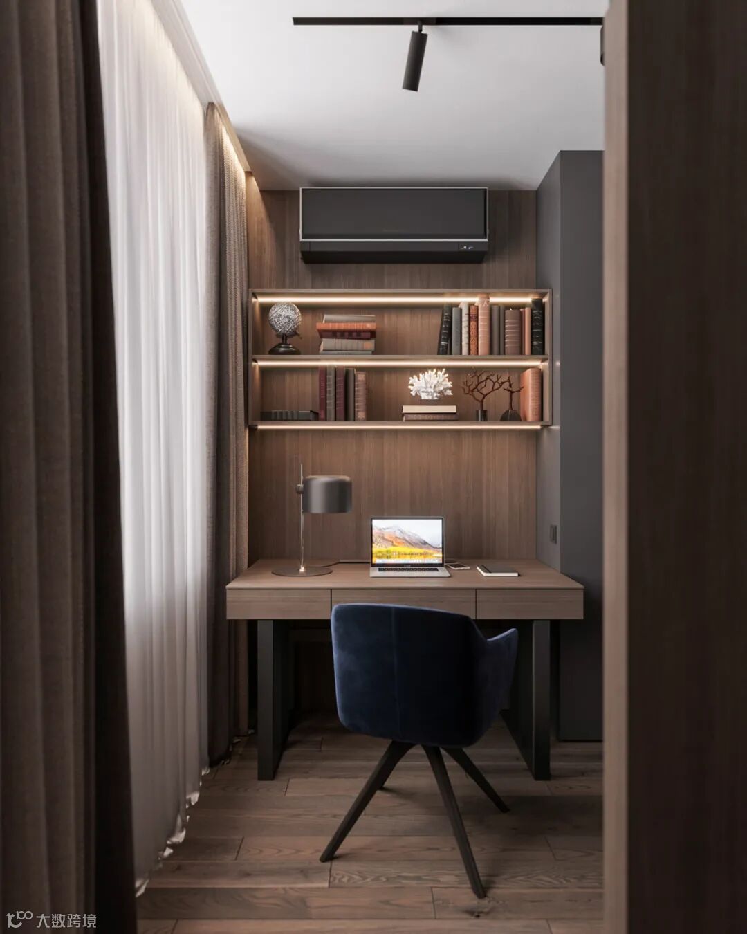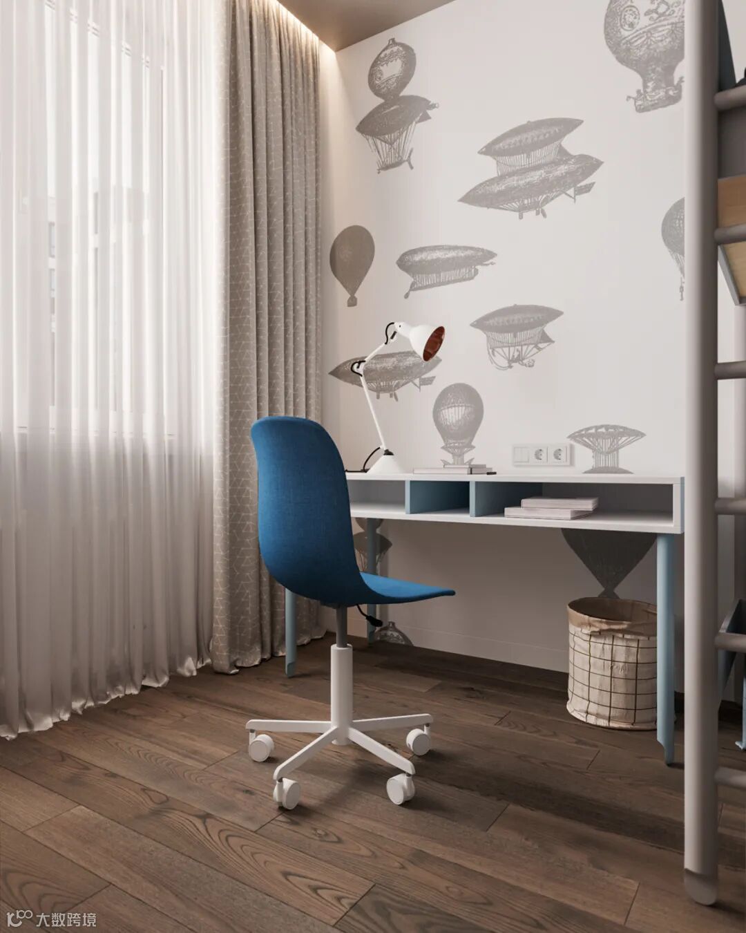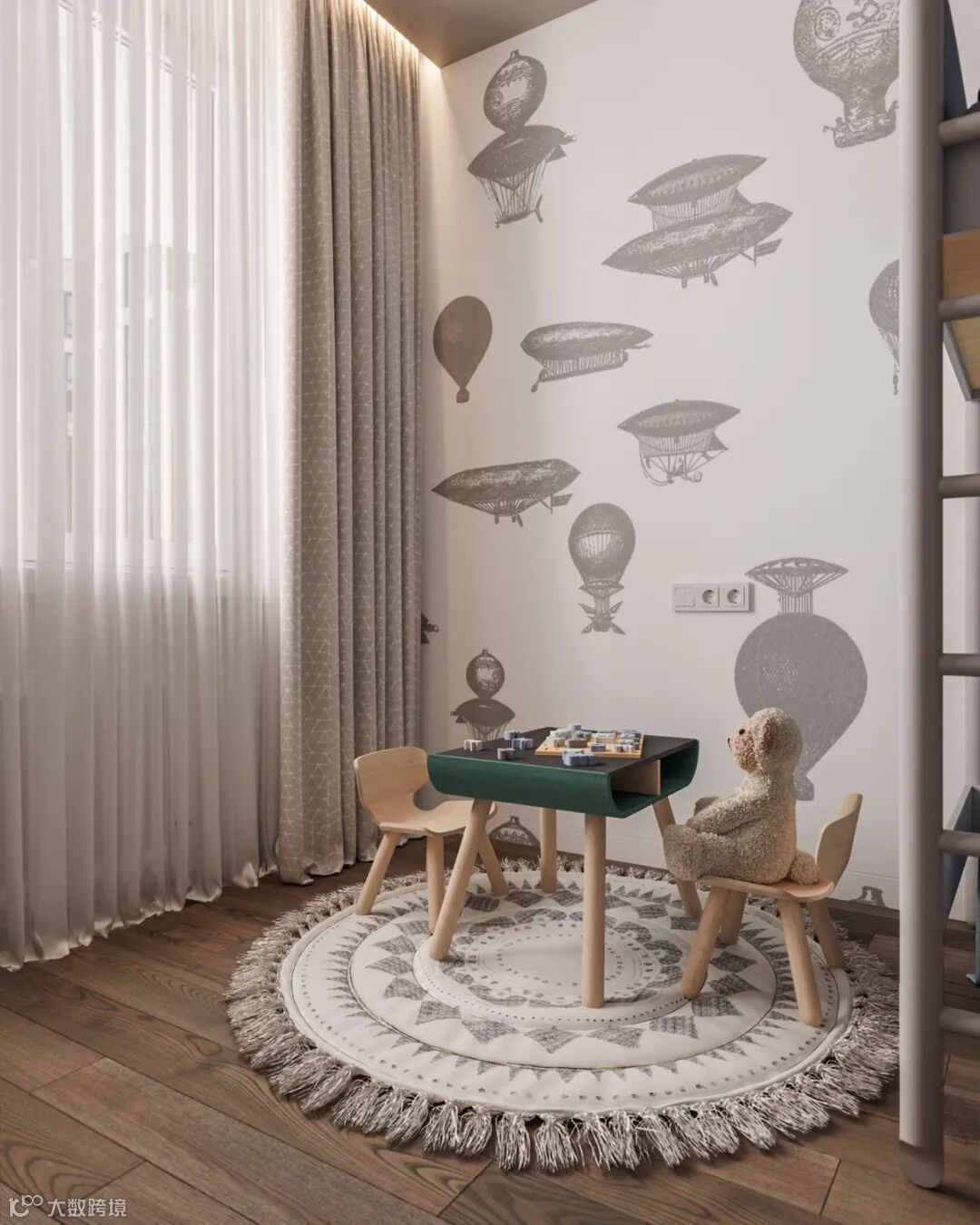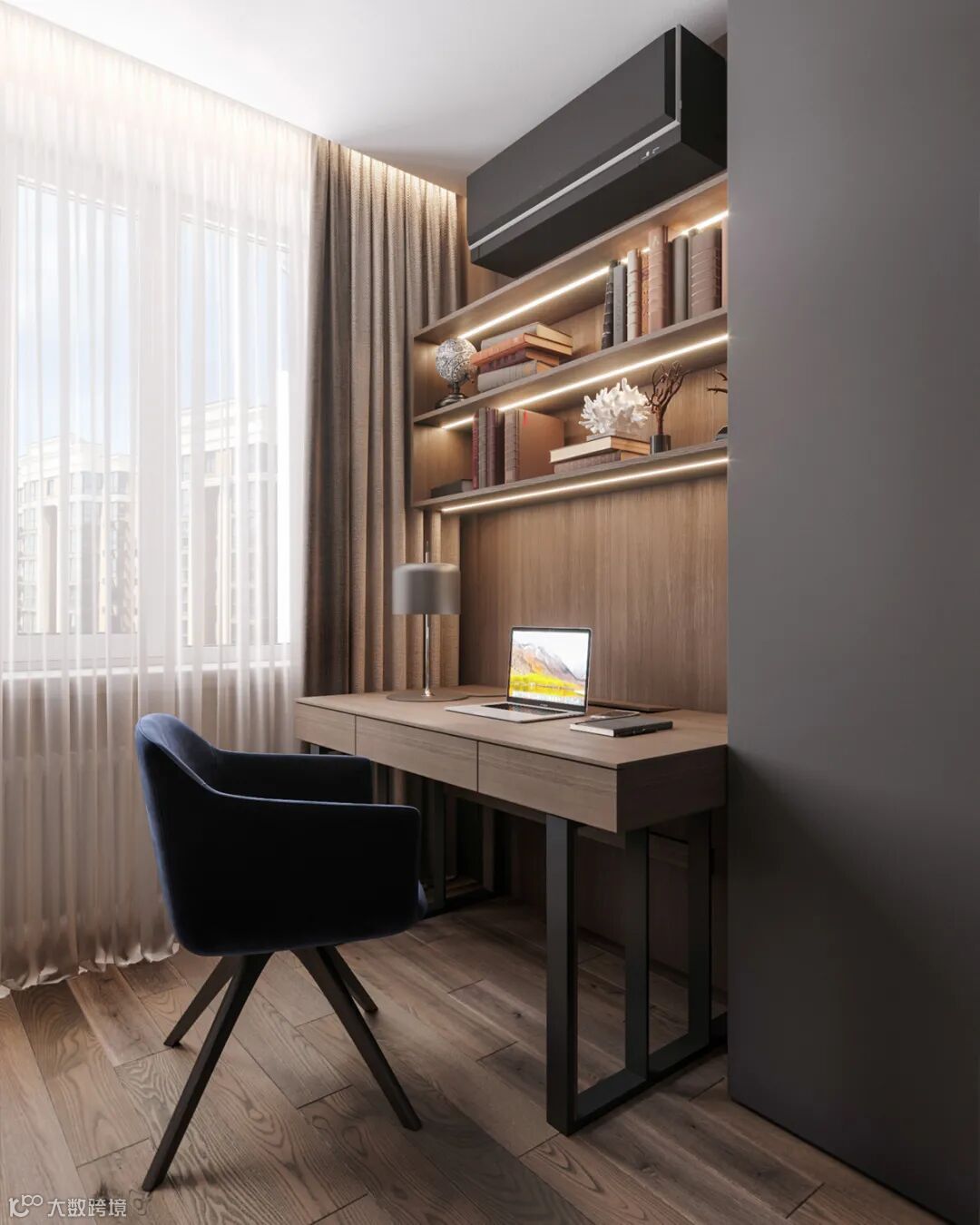 朦胧纱帘搭配原木的温润内敛,打造出一个时尚而精致的小角落。
