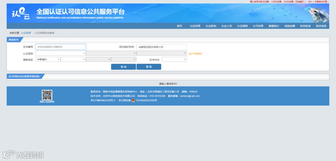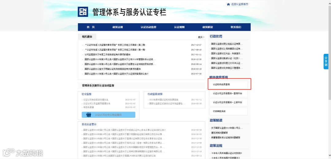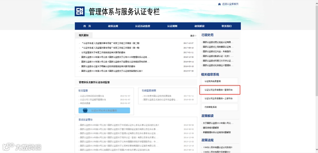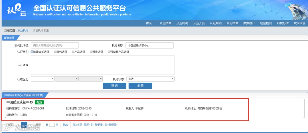 在中国国家认证认可监督管理委员会官网(以下简称:国家认证监官网)上可以查询认证机构资质是否正规。