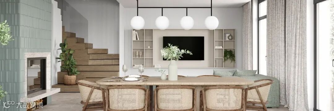 客厅电视、沙发背景墙利用木纹护墙板来取代墙面,一直延续到走廊看空间。木纹的天然纹理和温润质感,古朴而温暖,闻着淡淡的木香,仿佛感受到了大自然的气息,为居所带去一种治愈的力量。