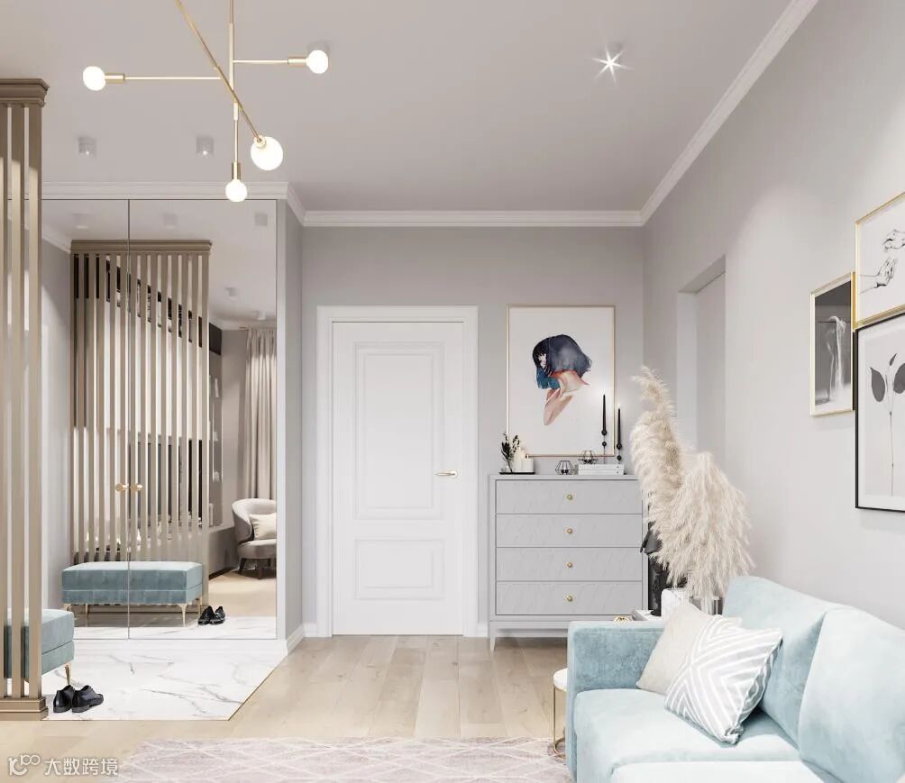 米杏色,高傲中带点忧郁的“雾霾蓝”作为点缀,