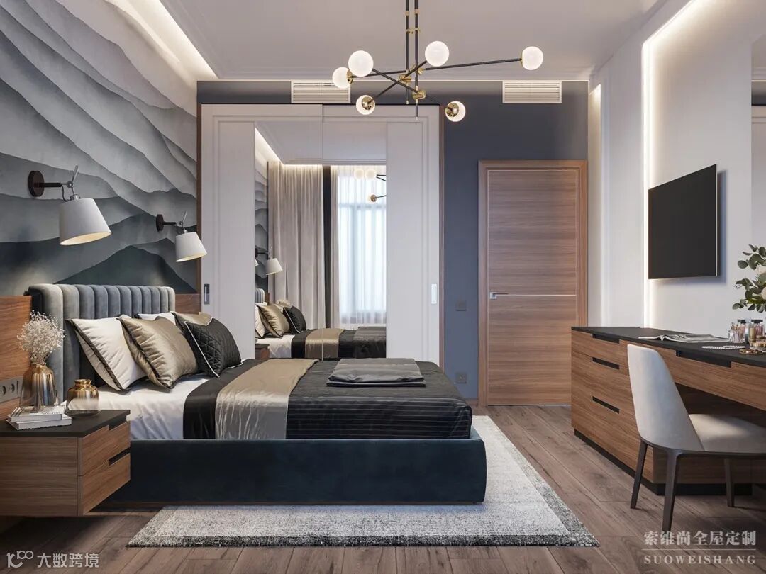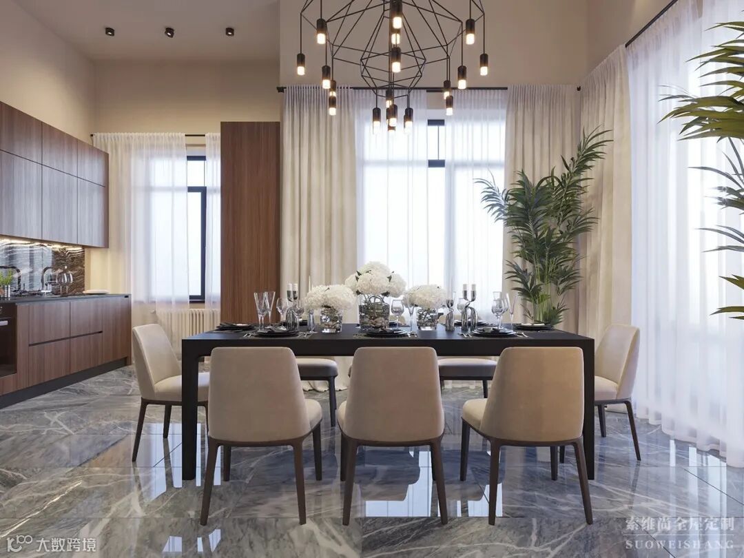 现代轻奢的调性,既不过分张扬,而又恰当好处的把贵族气息渗透到每个角落。在突显跃层本身自然优势的同时,又适当彰显业主的个人品味。