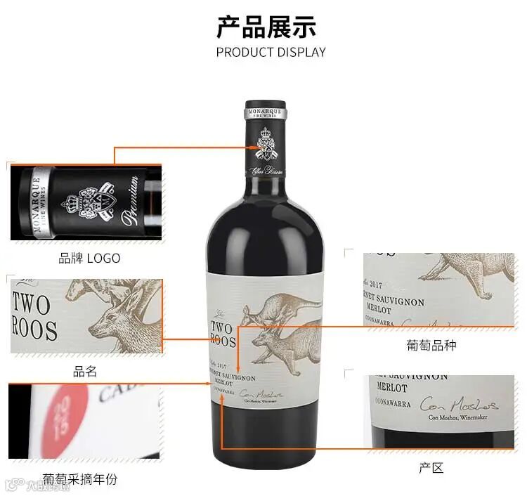 2017签名款袋鼠赤霞珠梅洛干红葡萄酒