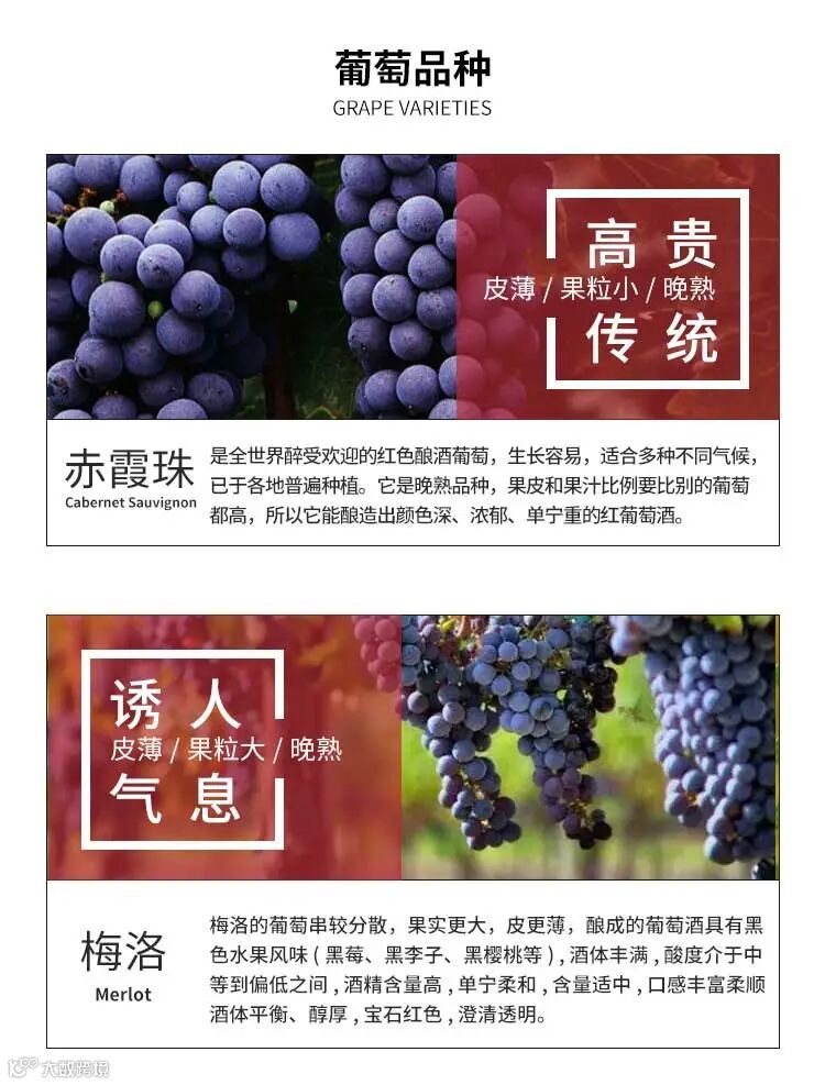 葡萄品种:赤霞珠、梅洛