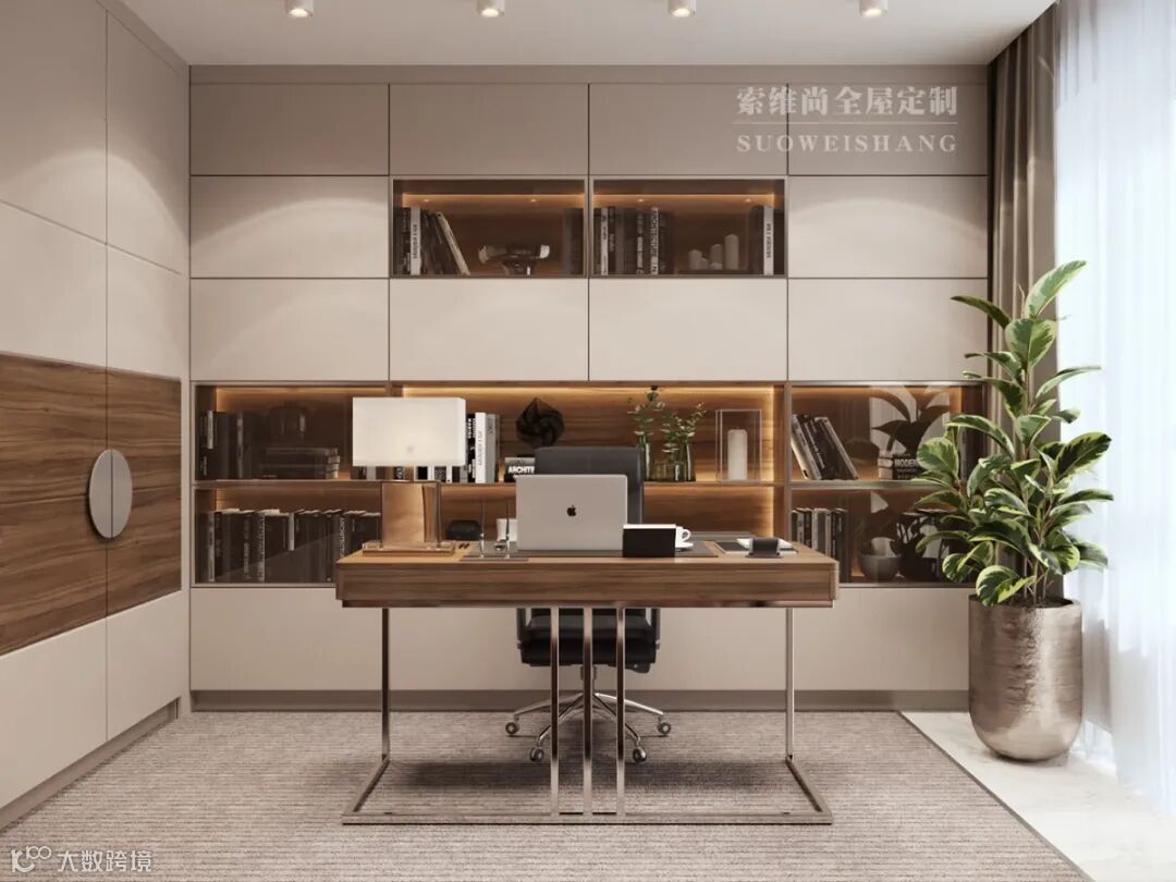 工作室原木色与暖灰的组合干净明亮,