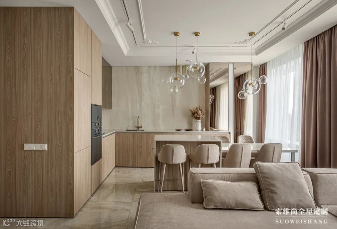 阳光透过阳台照射在餐厨处,