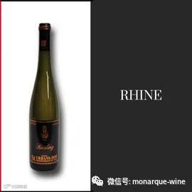 莱茵瓶也是一种长颈高挑的瓶子。它有一个相当小的底部凹槽。这只瓶子使用了深棕色的玻璃,这使它与其他瓶子不同。这种德国酒瓶用于酿制雷司令(Riesling)、穆勒-图尔高(Muller-Thurgau)和巴克斯(Bacchus)等葡萄品种。
