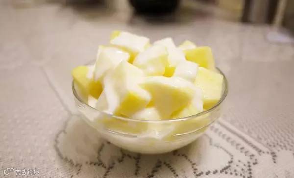 然后再把榨好的苹果汁与酸奶拌在一起来食用。苹果搭配酸奶的味道清新,清爽能给人带来一种惬意的享受。