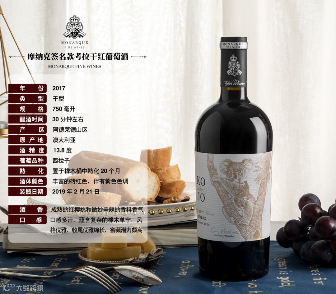 2017签名款袋鼠赤霞珠梅洛干红葡萄酒