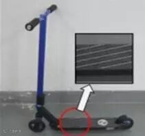 2. 选购时,看滑板车把立管和把横管的长度调节机构锁紧是否有问题,看有没带上制动装置,并观察折叠机构、手把、转向管、脚踏板和轮轴等位置是否有明显的变形和损坏问题。