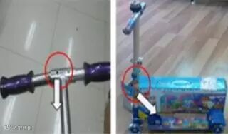 如儿童滑板车上存在跟儿童手指差不多大小的圆孔、夹缝(5mm~12mm),儿童手指伸入圆孔中,严重的话有可能导致手指血液不循环坏死。