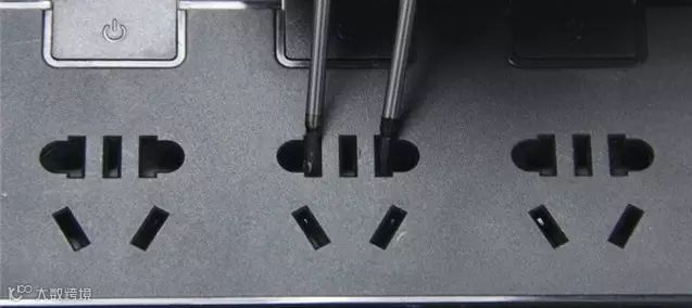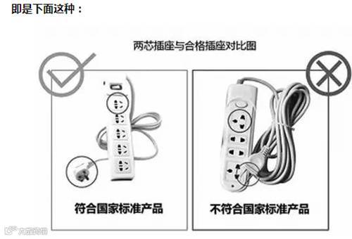 注意:旧版的万能孔插座另一个隐患在于插板上有三极插孔,但插座本身自带的插头上只有2个插销,俗称两芯插座,容易导致安全事故;