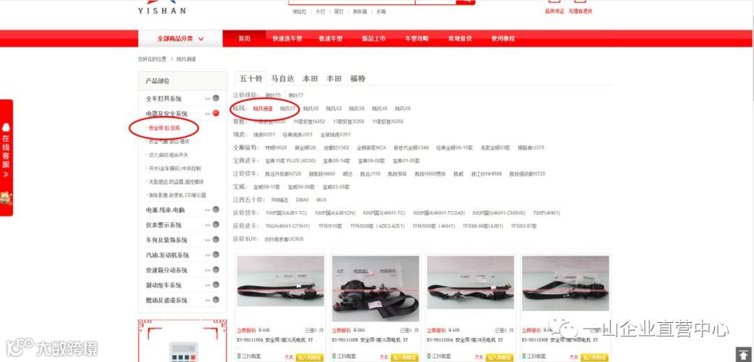 打开全部商品分类,可以浏览到全部车型,点击所需要的车型,就会显示这款车型的所有配件。