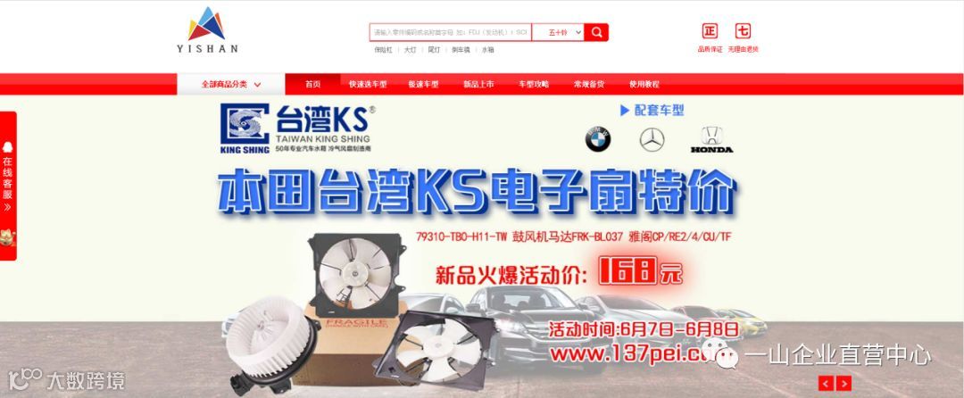 随着近几年互联网越来越普及,网络已经完全深入了人们的生活,互联网2.0时代正式到来,所以很多传统产业都进行了互联网+的升级,利用互联网的即时性和便捷性,现在人们已经可以足不出户做很多事情了,手指轻轻一点就能完成以往在线下要花几小时乃至几天的事,作为汽配行业中的佼佼者我们一山企业也早早认识到互联网的重要性和革命性,所以在很久以前开始成立互联网部门,建立互联网销售渠道。近几年增长的业绩和客户的良好反映证明了这一决定是十分正确的。所以今天我们就来给大家介绍我们一山电商的官方网站!