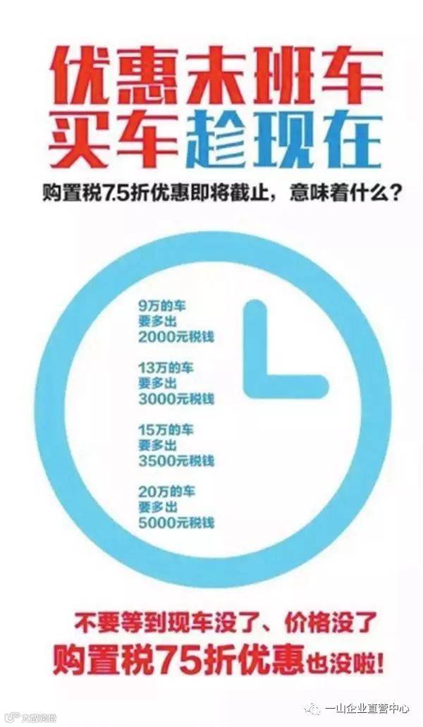 值得一提的是,征收购置税这些是以开发票的日期为准的,新规的日期是在2018年的1月1日。如果还想要享受7.5折的优惠的话,签合同的日期要注意在2017年12月31日之前就可以了。