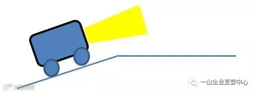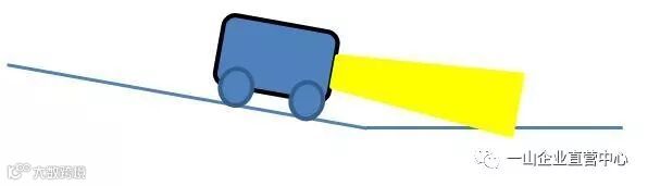 5、同理当你行驶在下坡路面时,突然发现灯光变亮照射距离变短时候,那么你的下坡之旅也就要结束了,原理如图所示