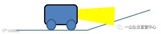 3、当行驶在平地但你发现整体灯光突然变短变亮时候,那么在你面前就是一个上坡,原理如图所示