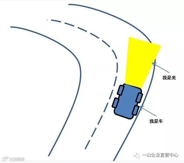 1、假设你在行驶时发现右边的灯光照射突然变短了而左边的灯光没有变化,那么在你面前的就是一个左手弯,如图所示,反之亦然。