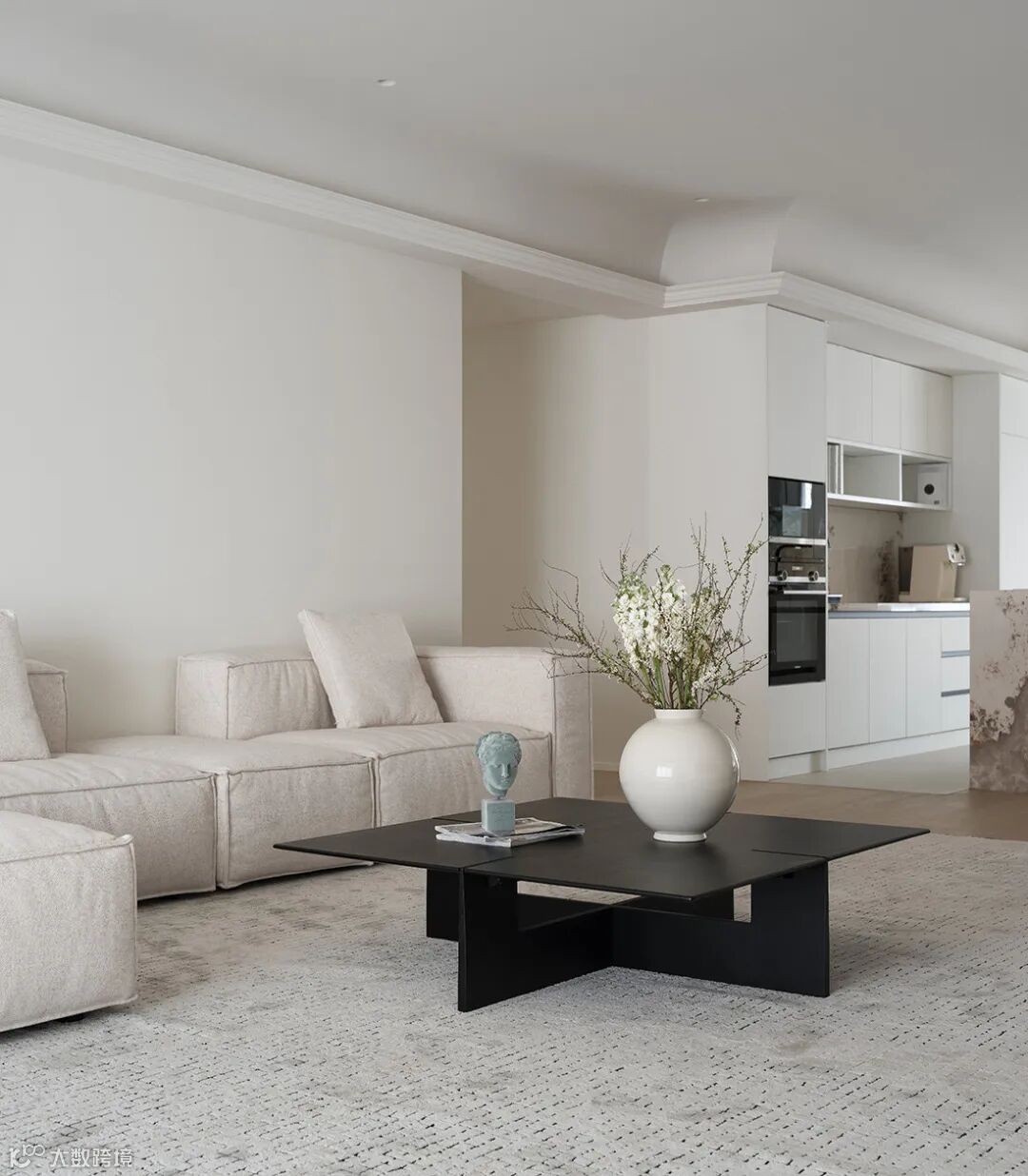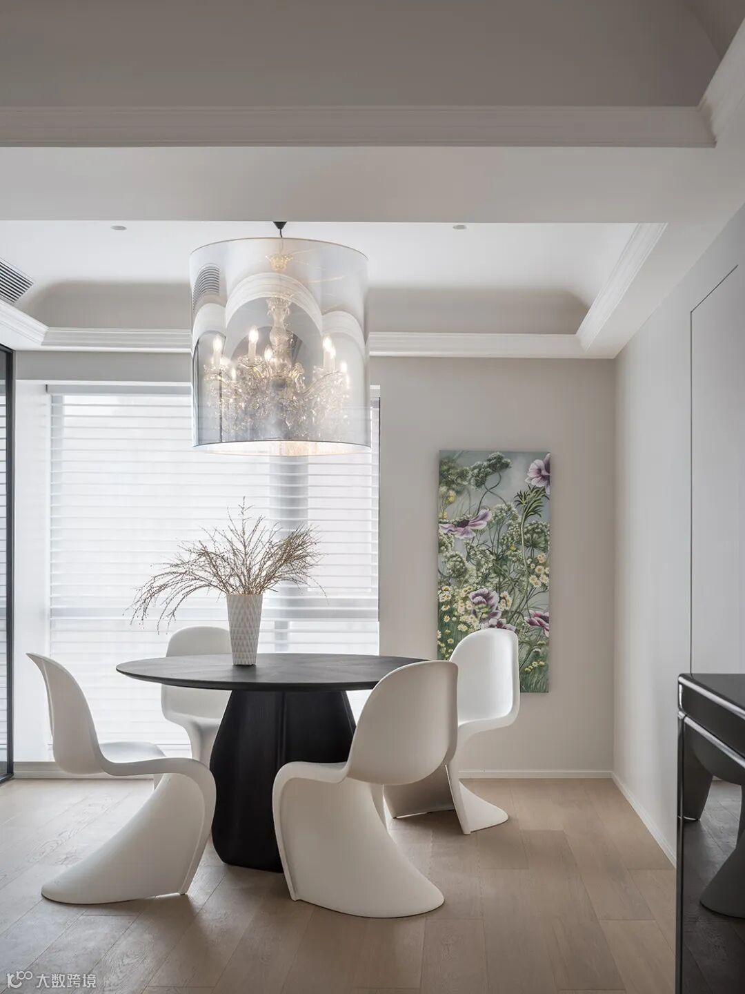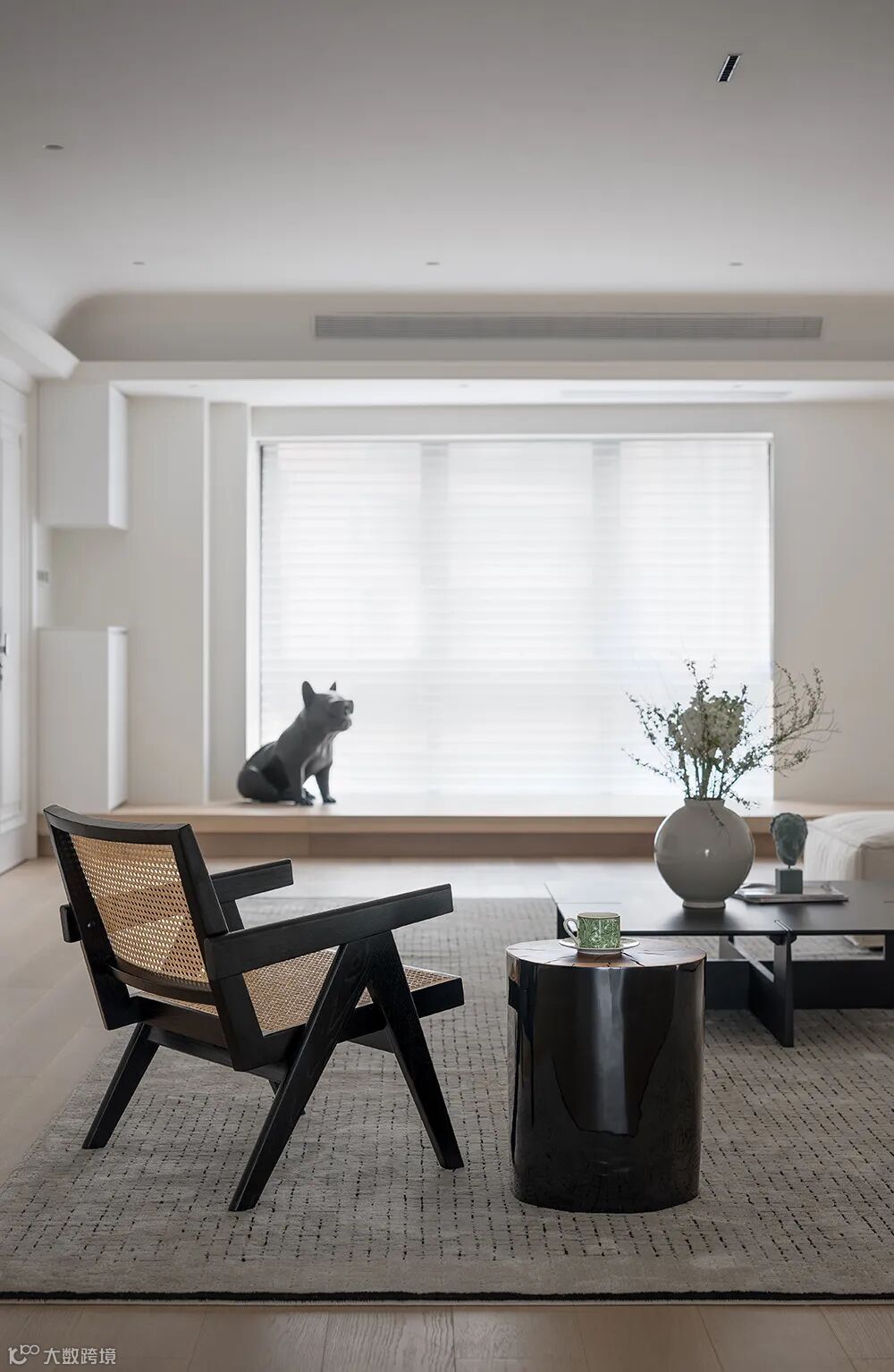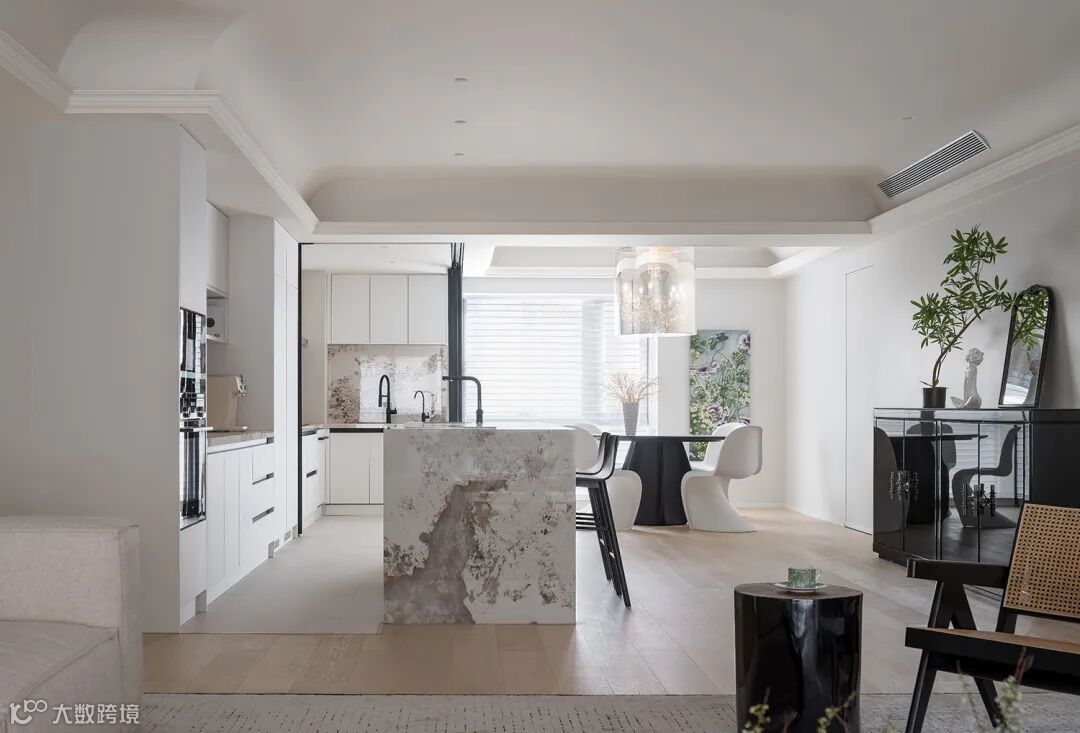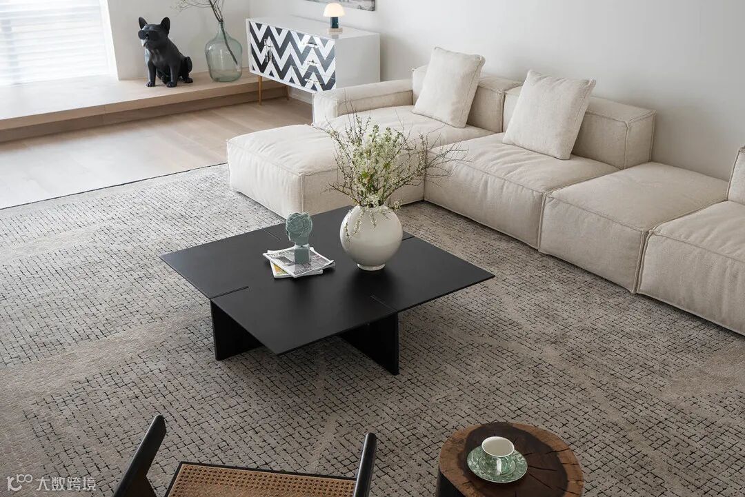 黑白配的点缀结合空间中的装饰细节,流露出现代极简主义中的写意美感。