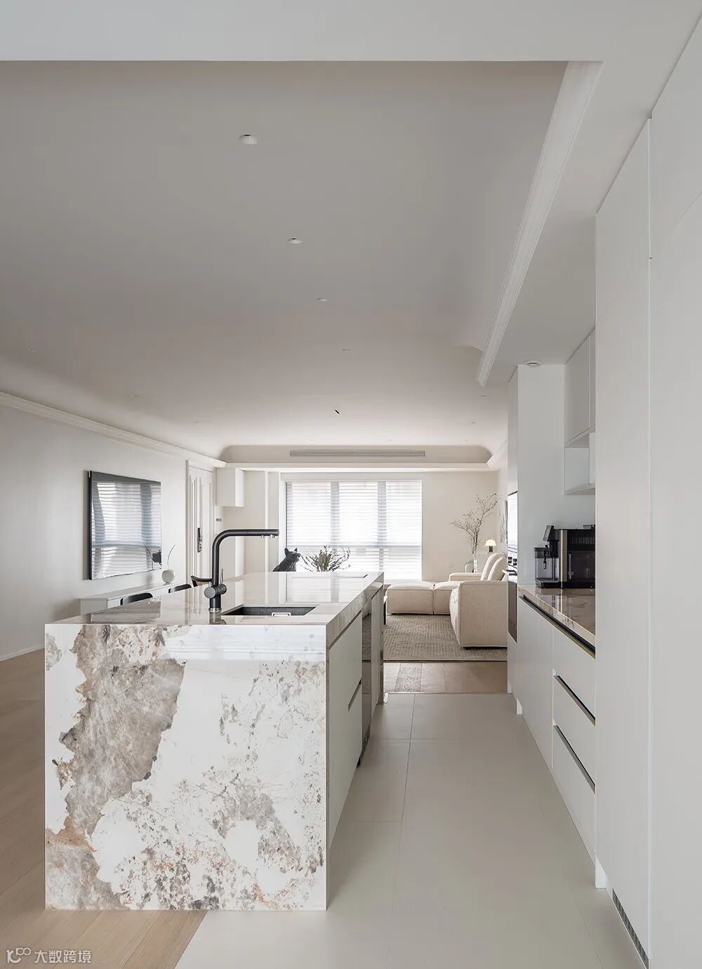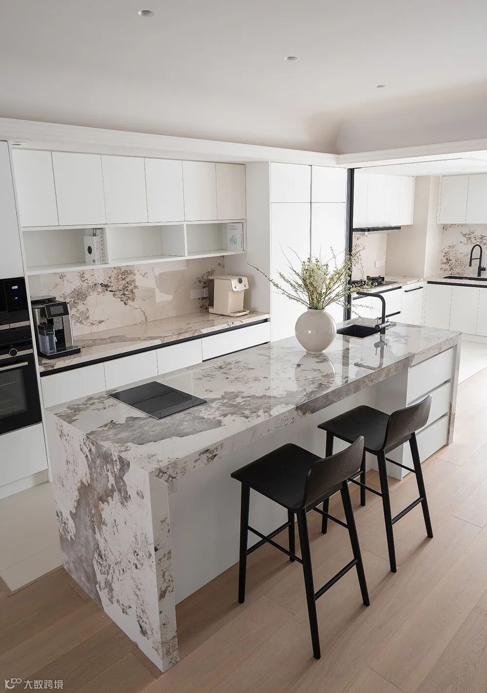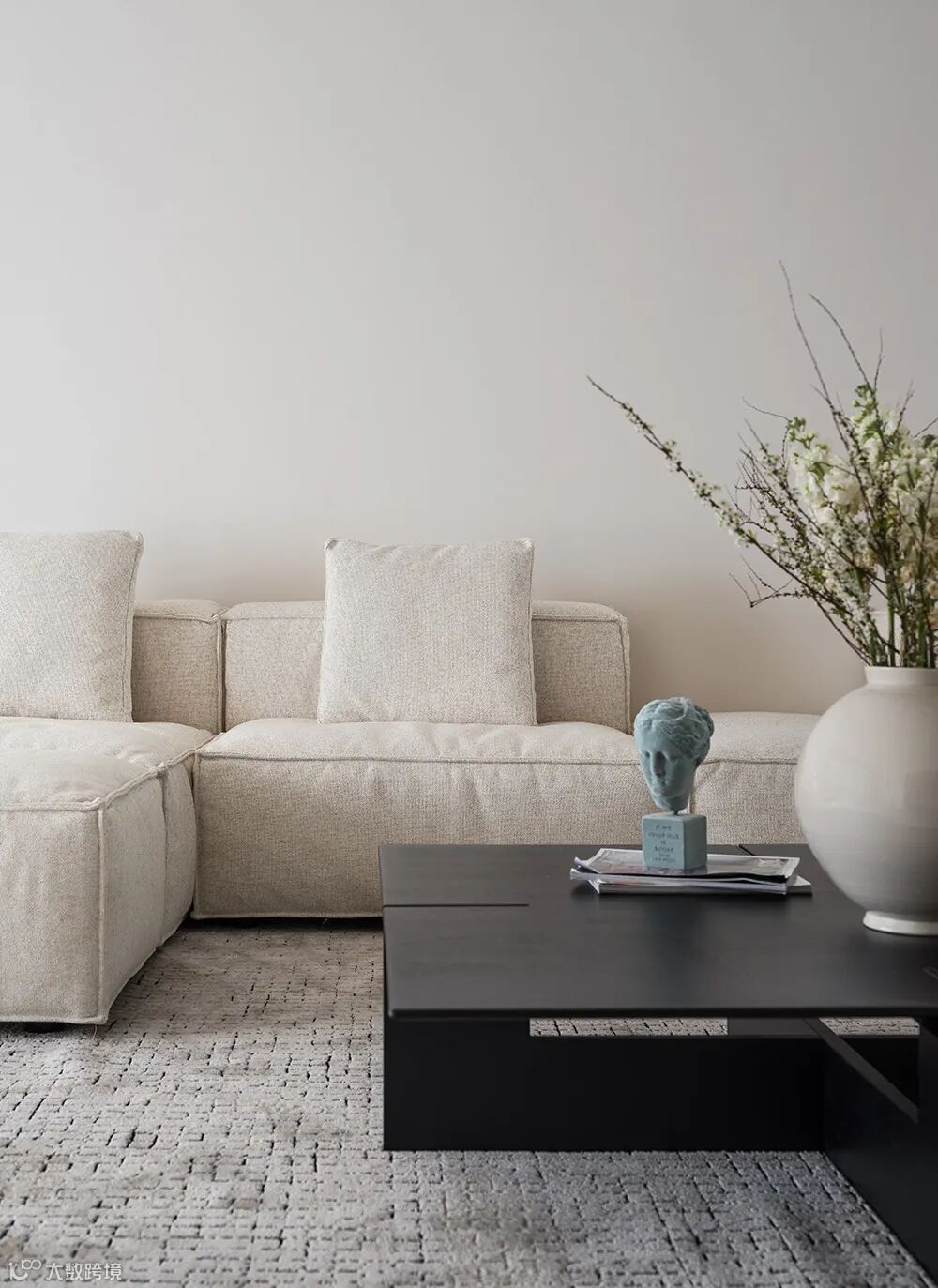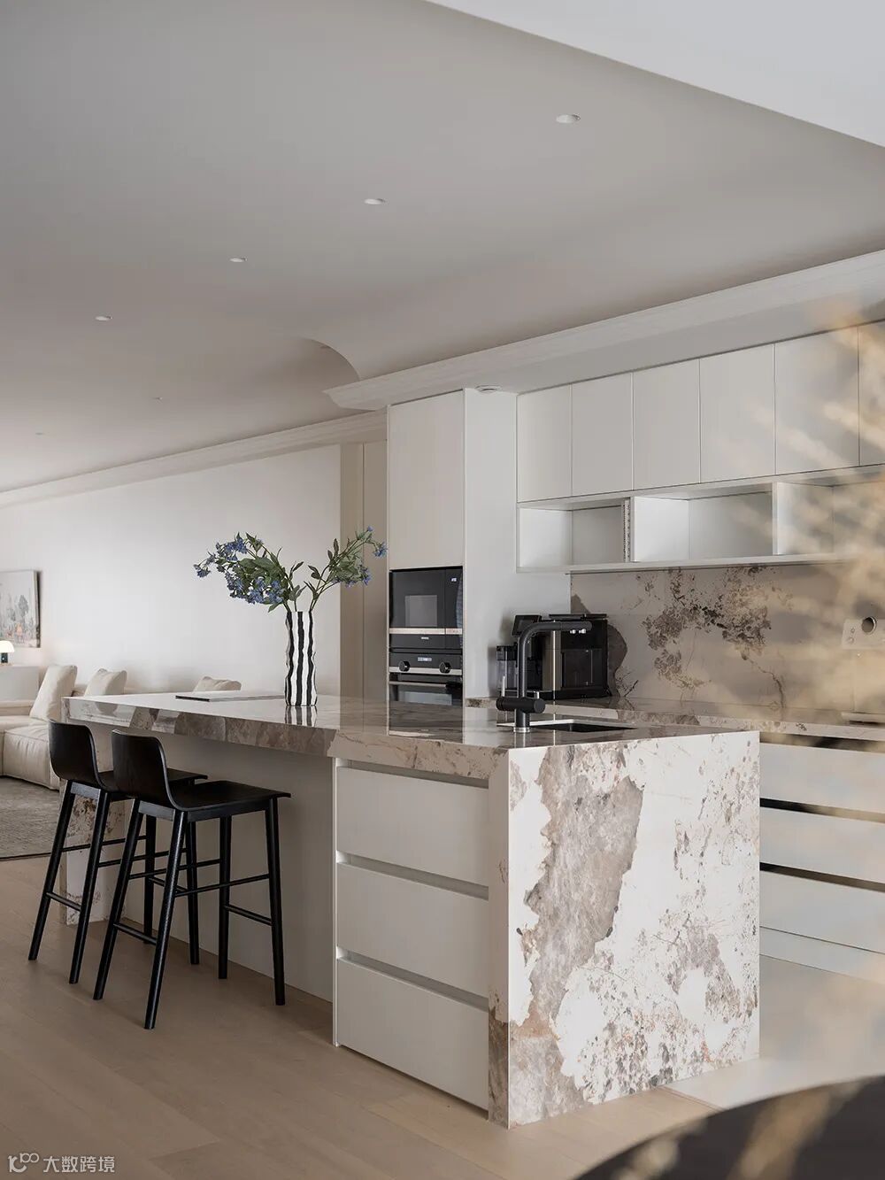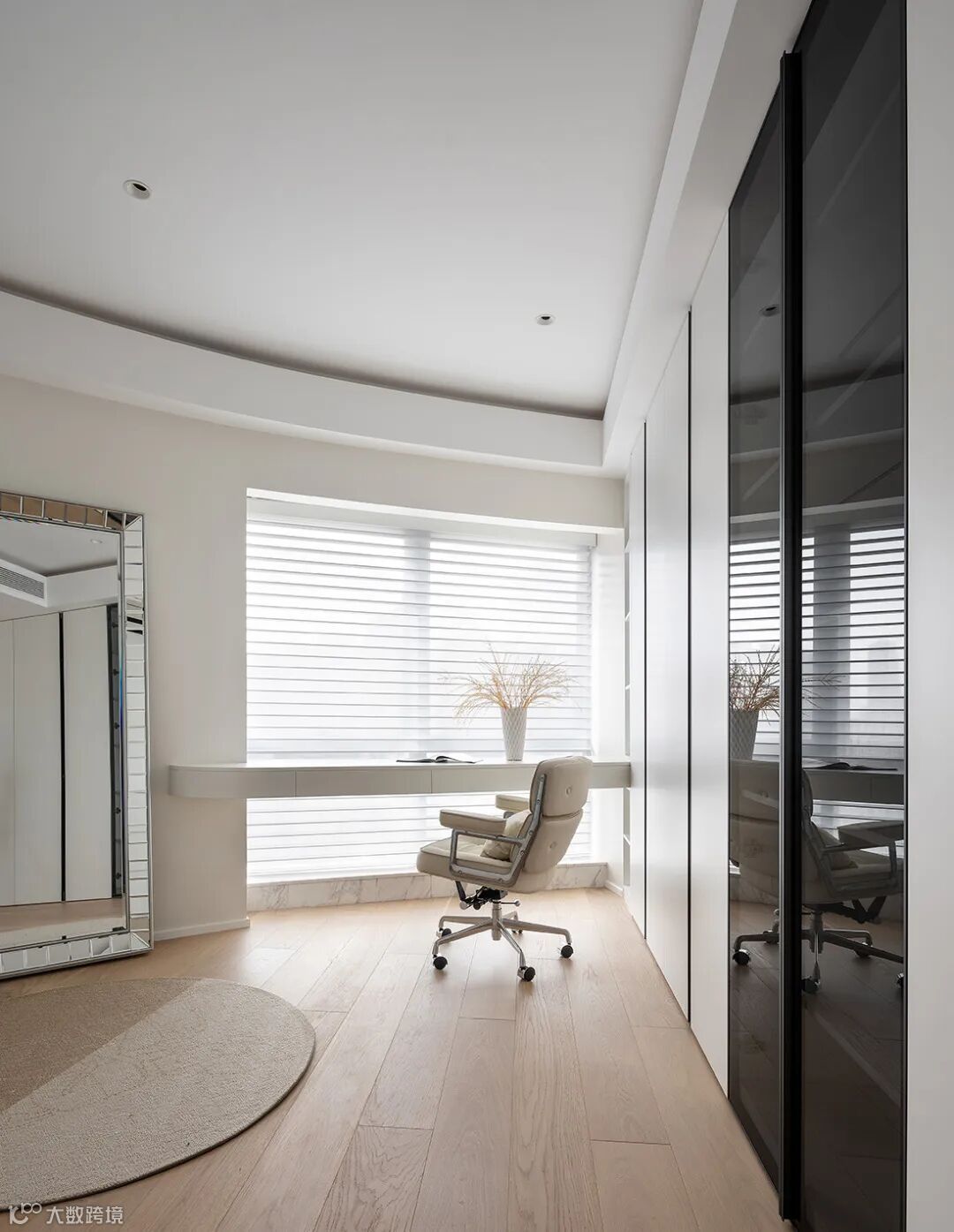 黑白配的点缀结合空间中的装饰细节,流露出现代极简主义中的写意美感。