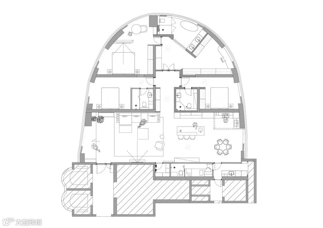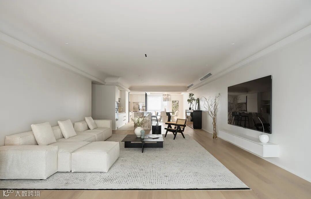 Each space of the public area is cleverly linked, and the whole is extended, which visually meets the spacious and comfortable feeling that the female owner likes.