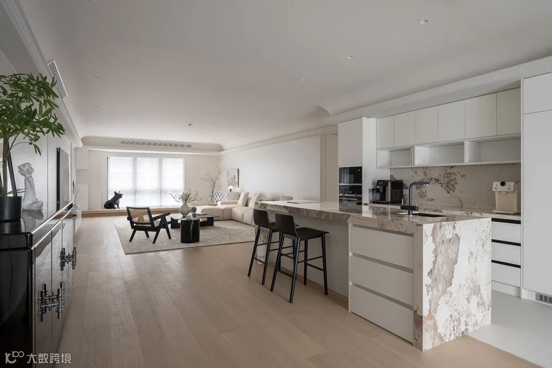 公共区域各空间巧妙链接,整体得到延伸,视觉上,满足女屋主喜欢的宽敞舒适之感。