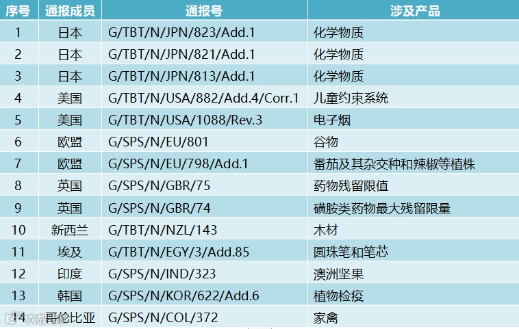 WTO技贸措施通报速递(12月5日) 广东技术性贸易措施