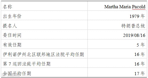 2019年8月,Pacold就任伊利诺伊州北区联邦地区法院法官。其个人信息如下: