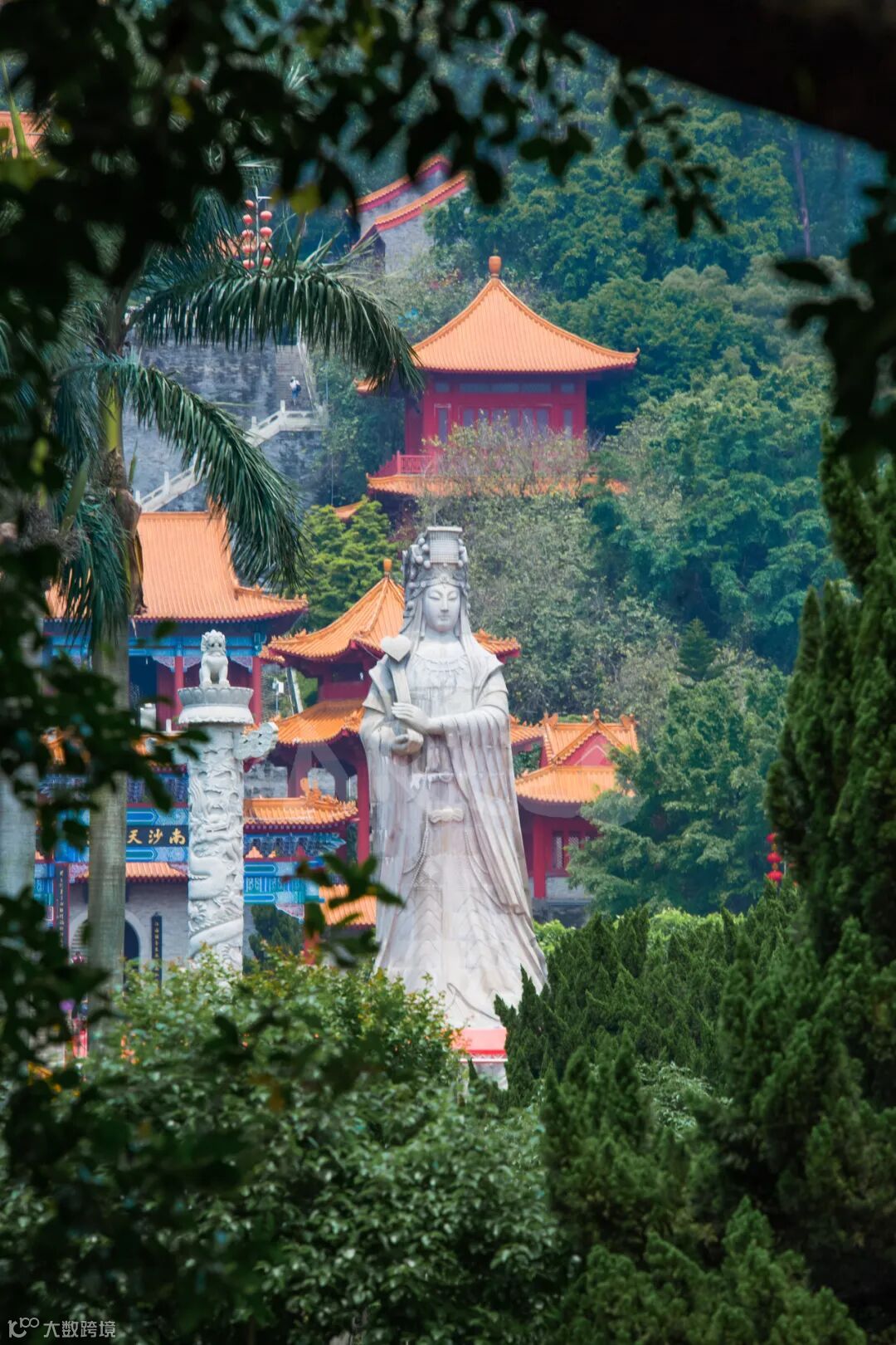 南沙天后宫为清代宫殿式建筑群,吸纳了北京故宫殿亭楼阁的对称规整与南京中山陵拾阶而上的宏大庄重。红墙黄瓦,象征着“国家、大地与权力”,十分壮观。从地图上来看,整座天后宫的建筑物背山面海,按中轴线整齐分布,分为广场与宫殿两大部分,登临其中不仅能感受到古建筑制式之美,还能欣赏到开阔的海面。