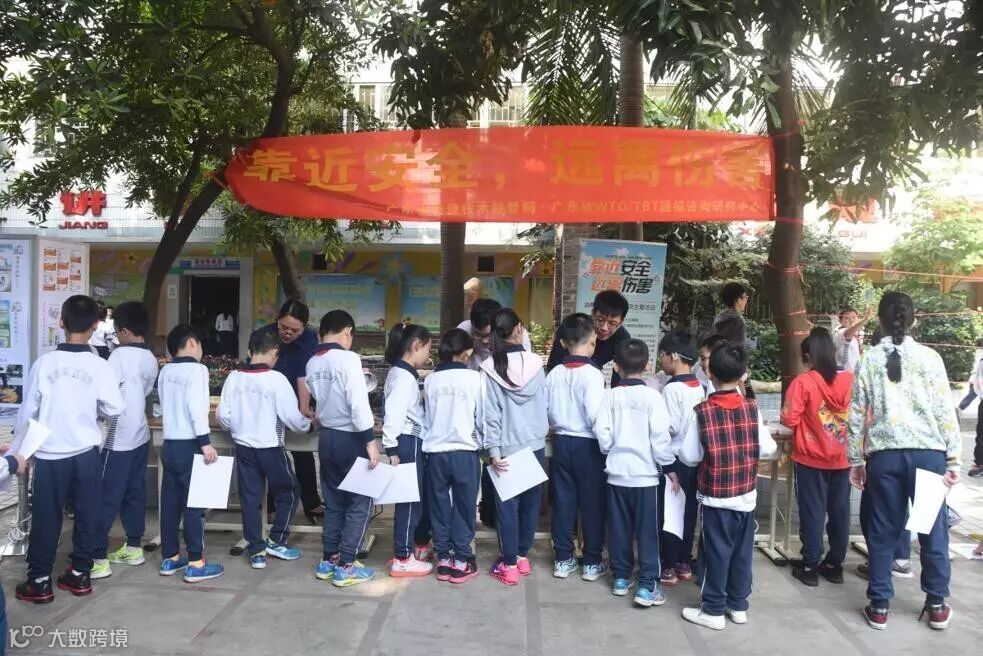 省WTO/TBT中心以“靠近安全,远离伤害”为主题,通过设计模拟检测实验、挂画展示、产品展示、趣味游戏、有奖问答等形式,面向广州市越秀区先烈中路小学师生和部分参加活动的家长介绍了生活中选购安全产品、预防风险伤害的小技巧。两个小时的活动中,百余名学生到摊位前参加了活动。