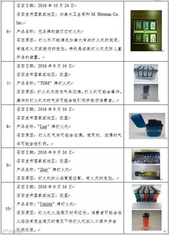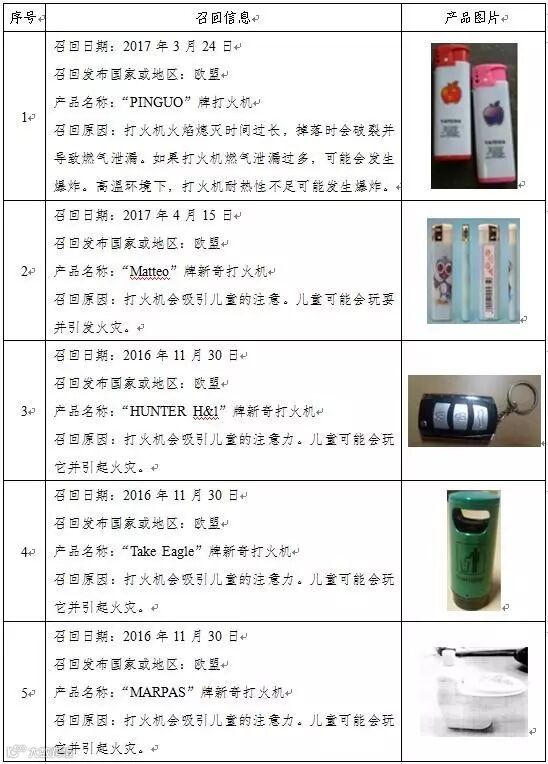 由于新型打火机使用安全问题,近年来该产品被频繁召回。2015年11月至今,欧盟、美国和加拿大缺陷消费品召回系统中,召回打火机的案例达到12例。