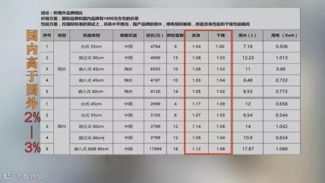 参与测试的一台外国产品,售价在4500元,跟它容量接近的两台中国产品价格都在3500元左右。从测试结果,这台外国产品洗净性能指数为1.08,而两台中国产品洗净性能指数一台是1.06,一台是1.14。也就是说,中国产品在清洗效果上,已经做得非常好。