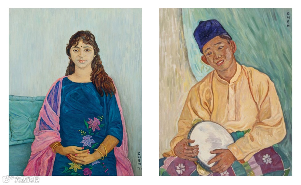 课余之外,她专注于艺术创作,接受定制委托通过展览等途径售出作品。凭借广泛的人脉网络、多语言能力与多元文化素养,她成功建立起职业艺术家的生涯,在当时尤为突出,女性艺术家中更属罕见。她还坚持自学马来语,并与本地马来艺术家建立起深厚交往,成为当时少数能跨越语言文华化局限的华人艺术家。本单元的肖像作品是她艺术实践的重要组成部分,展现了她对新加坡多元族群的深入理解与细腻描绘。