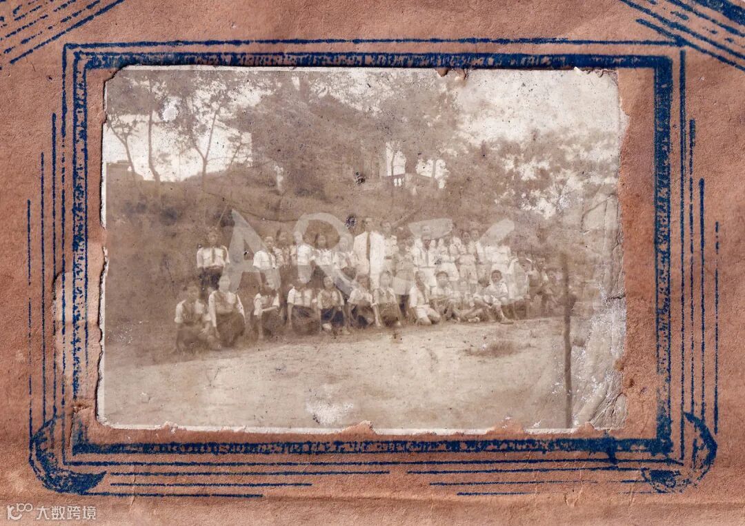 在一本校友回赠的1949年第七届同学录中,有一张拍摄于1949年的照片原片,虽然照片已有些残旧日但能清晰看到同学们的合照背景也是金洲岗图书馆。