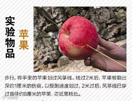 这就相当于100斤重的东西压在一个指甲盖上,伤害非常大。骑着摩托车撞到风筝线产生的压强,相当于菜刀切菜时蔬菜所承受的压强。
