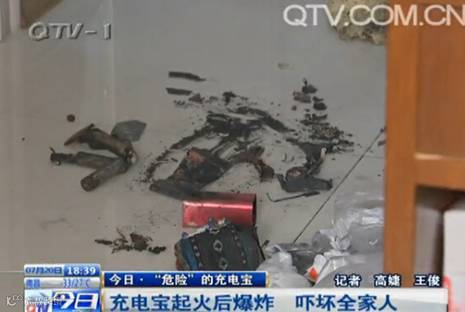 2015年7月18日,青岛崔先生女儿充电宝发生爆炸,持续约三十秒,家里的地板被炸出小坑。