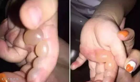 结果“哇”的一声叫出来,孙女士赶紧买了瓶水为孩子降温,十几分钟后,手掌上竟然起了四、五个大水泡,最大的一个有弹珠那么大。